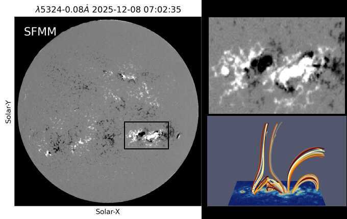 要欣赏这种“烟花”,需要借助特殊的“科学眼镜”——全日面矢量磁像仪(SFMM,Solar Full-disk Multi-layer Magnetograph)。本期,我们将通过子午工程连云港赣榆站的全日面矢量磁像仪,带您一同回顾2025年12月8日爆发的一次X1.1级耀斑,领略太阳活动区的复杂磁场与爆发瞬间的绚烂之美。