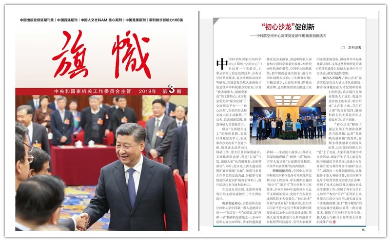 近日,空间中心党建工作方法再次刊登在中央和国家机关工委重要党刊《旗帜》杂志(原《紫光阁》杂志)。该文报道了空间中心复杂航天系统电子信息技术重点实验室第二党支部(以下简称“技术二支部”)激发创新活力的优秀做法。