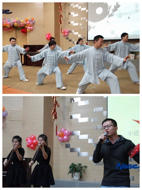 2015年1月5日晚6时,九章大厦太阳厅一片喜气洋洋的气氛,在这里,空间中心研究生总结表彰大会正在举行。空间中心党委书记黄康平,综合办、科技处、人力处、团委和研究生部负责人及代表应邀参加。黄康平书记在致辞中对大家提出了新年的期盼与祝福,祝愿大家阖家欢乐,学业有成。空间中心研究生会主席团代表刘春蔚同学对2014年的研究生会工作进行了总结。随后,对2014年度研究生会工作中的优秀代表进行了表彰。 文艺汇演环节在激情四射的爵士舞蹈中拉开了帷幕,节目精彩纷呈,游戏趣味横生,整个会场气氛热烈欢快。小品、相声幽默风趣,会场笑声此起彼伏。歌舞乐、歌曲串烧、小提琴伴唱、独唱、吉他伴唱、钢琴独奏等节目,尽显同学们婉转动听的歌喉,遏云绕梁的演奏,洋洋盈耳,一片宫商。综合办的杜老师为大家带来的二胡独奏,如若林籁泉韵,感心动耳。传统的太极拳表演刚柔并进,开合有序,尽显中华文化博大精深,底蕴深厚。魔术表演“百变活人”精妙绝伦,始料未及。集体舞Roly-poly婀娜多姿,曼妙舞姿若轻云蔽月,流风回雪。游戏环节吸引了同学们的积极参与,大家各显其能,现场欢声笑语不断,时时引得哄堂捧腹,开怀大笑。 大会在合唱《相亲相爱》中拉下了帷幕,在一片温馨气氛中结束。崭新而来的2015年将会是希望的一年、开拓的一年、进取的一年。希望全体老师和研究生在新的一年里百尺竿头更进一步,工作、学习取得更加优异的成绩。 (供稿:研究生会)