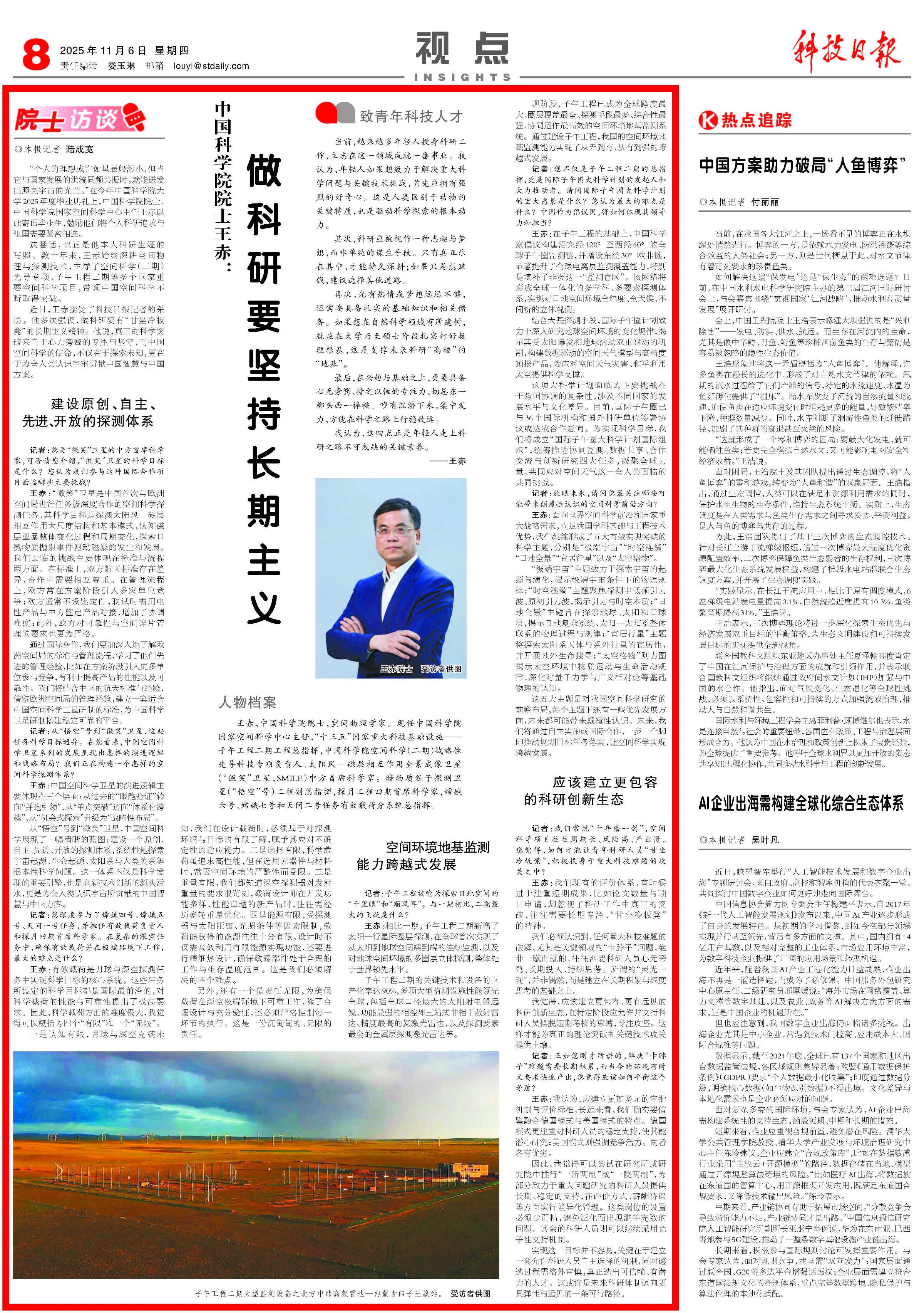这番话,也正是他本人科研生涯的写照。数十年来,王赤始终深耕空间物理与探测技术,主导了空间科学(二期)先导专项、子午工程二期等多个国家重要空间科学项目,带领中国空间科学不断取得突破。