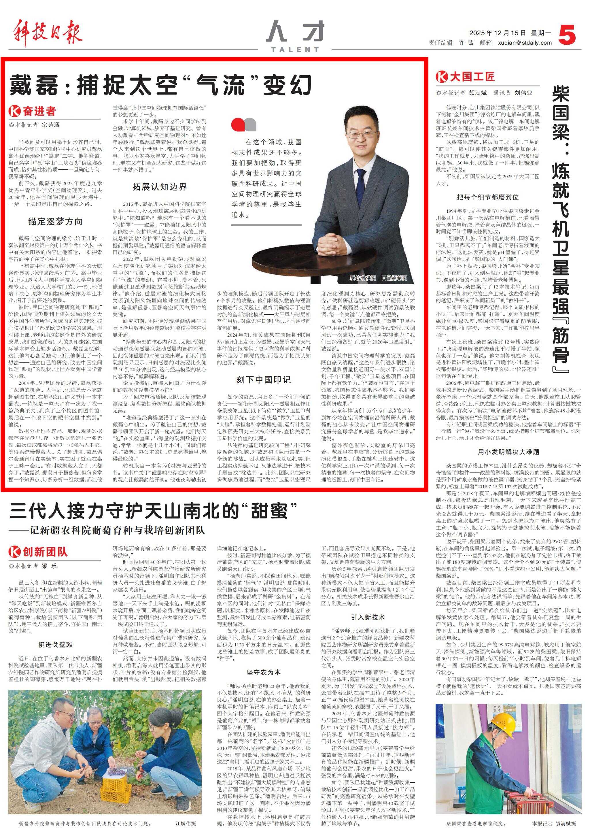从童年捧读《十万个为什么》的少年,到如今站在空间物理前沿的科研人员,戴磊的初心从未改变。“让中国空间物理研究赢得全球学者的尊重,是我毕生追求。”他说。