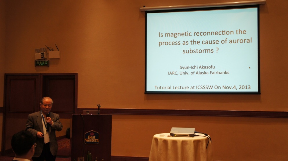 11月4日至7日,第三届磁暴、亚暴及空间天气国际会议(International Conference on Storm, Substorm and Space Weather,ICSSSW)在中国深圳举行。本次会议由中科院国家空间科学中心主办,得到了中科院、国家自然科学基金委员会和国家航天局的大力支持。 会议安排了讲学报告(Tutorial talk)、邀请报告(Invited talk)和一般报告(Contributed talk),与会专家在充分展示工作成果和研究进展的同时,围绕磁暴、亚暴以及空间天气研究过程中的热点问题进行了广泛而深入的交流讨论。亚暴概念的提出者,美国阿拉斯加大学Akasofu教授,详细阐述、分析了磁场重联在极光亚暴和太阳耀斑中的作用;加拿大自然科学与工程研究委员会(NSERC)首席教授、加拿大卡尔加里大学Andrew Yau教授对电离层-磁层耦合研究发展过程中的新旧学术观点进行了对比,并提出了独到见解;空间物理数值模拟专家,来自筑波大学(University of Tsukuba)的Dongsheng Cai教授系统介绍了太阳风-地球磁层相互作用的三维粒子模拟——IMF旋转对磁层动力学的影响。 本次会议为国内外空间天气科研工作者提供了交流、学习、讨论、进步的平台,更为我国青年科技人员提供了宝贵的学习和交流机会,激发了新的研究灵感和工作思路,调动了对空间科学的兴趣和热情,对促进我国空间物理学科发展,提升中国在国际空间科学舞台的影响力具有十分重要的意义。 第三届磁暴、亚暴及空间天气国际会议由国家空间科学中心王赤研究员和美国约翰霍普金斯大学Anthony Lui教授担任召集人,来自美国、加拿大、日本、俄罗斯、德国、法国、韩国、芬兰、罗马尼亚和中国10个国家60余名空间物理学者参加了本次会议。国内参会单位包括北京大学、中国科学技术大学、北京航空航天大学、山东大学、中国极地研究中心和中科院国家空间科学中心。 磁暴、亚暴及空间天气国际会议是空间天气领域的系列会议,每两年举行一次。第一届和第二届磁暴、亚暴及空间天气国际会议分别于2009年、2011年在北京和杭州举行。 (供稿:空间天气学国家重点实验室、国际合作办公室)  图一:王赤介绍会议背景  图二:空间物理学家Akasofu教授作讲学报告 图三:参会专家学者合影 |
