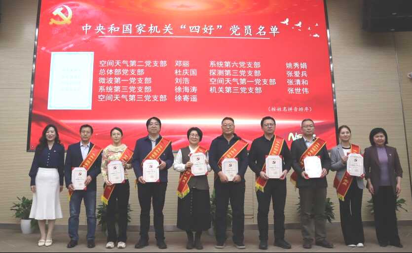王赤为获得中央和国家机关“四强”党支部的探测第三党支部颁发奖牌;申倚敏和白鹭为荣获中央和国家机关“四好”党员的邓丽等9名同志颁发证书。