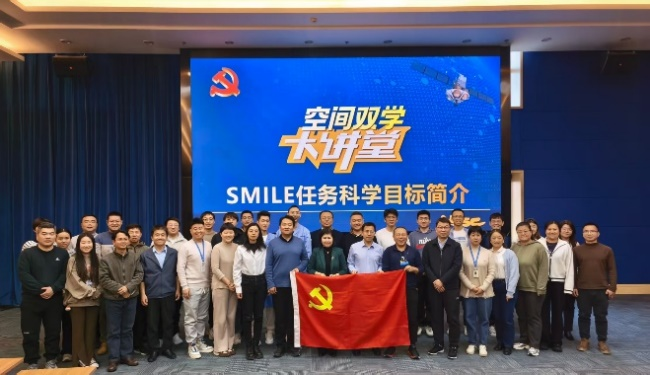 成立大会后,由空间中心党委主办,空间天气党总支、空间科学工程管理党支部、运控党支部、机关第一党支部承办的“空间科学大讲堂”,邀请了“微笑卫星”任务首席科学家助理孙天然研究员作《SMILE任务科学目标简介》专题报告,活动由中心党委副书记申倚敏主持,共有党员、青年学者等60余人参加。