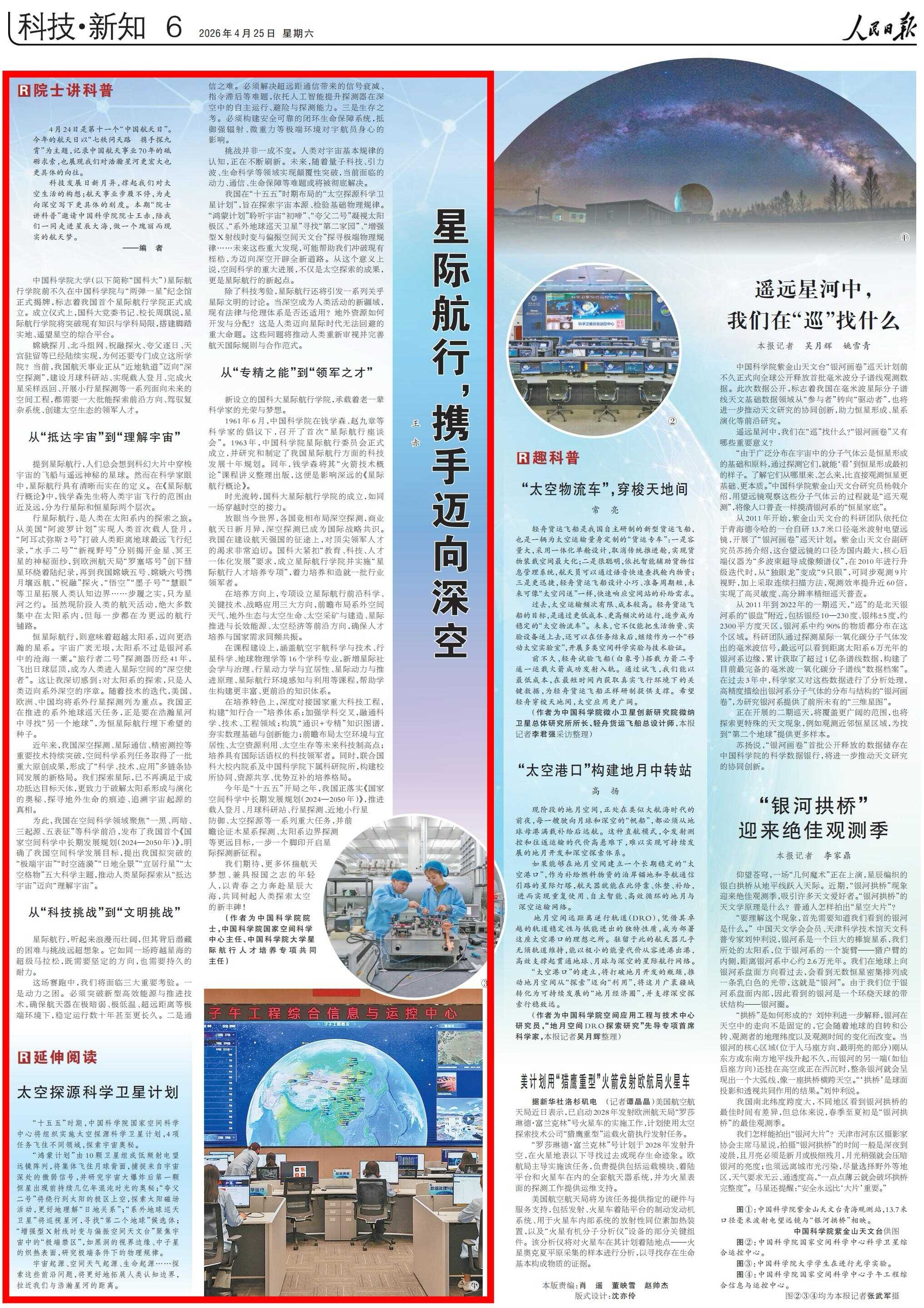 近年来,我国深空探测、星际通信、精密测控等重要技术持续突破,空间科学系列任务取得了一批重大原创成果,形成了“科学、技术、应用”多链条协同发展的新格局。我们探索星际,已不再满足于成功抵达目标天体,更致力于破解太阳系形成与演化的奥秘、探寻地外生命的痕迹、追溯宇宙起源的真相。