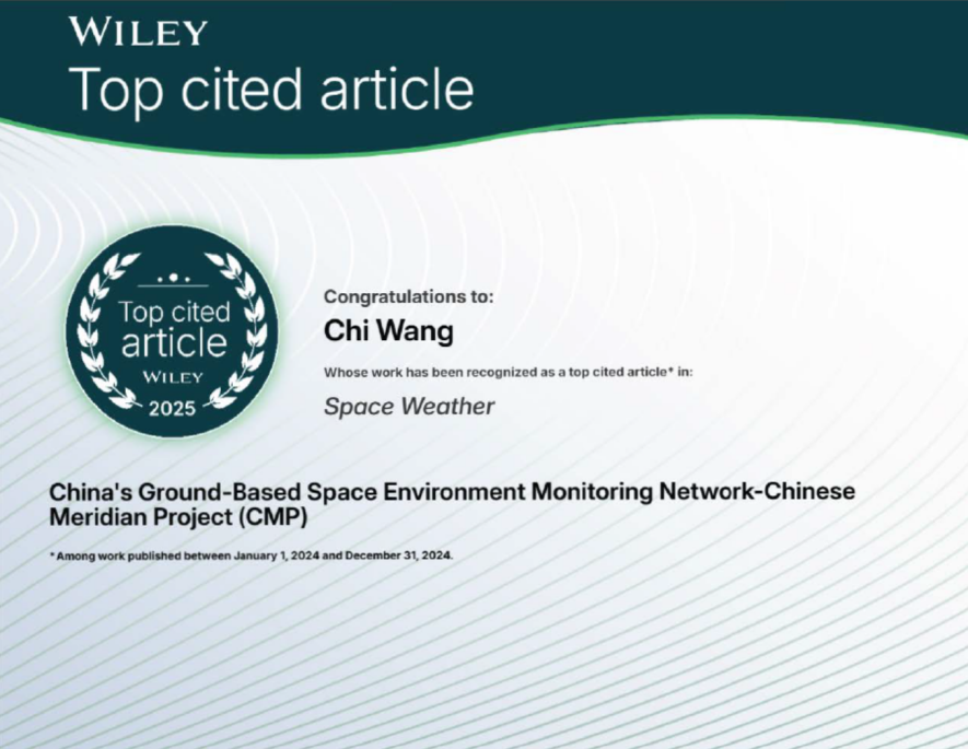 近日,美国地球物理学会(AGU)旗下权威期刊Space Weather公布2024年最高引用量论文榜单,由子午工程总指挥王赤院士领衔,工程团队共同完成的论文"China's GroundBased Space Environment Monitoring Network—Chinese Meridian Project (CMP)" 成功入选该年度引用量前十名。