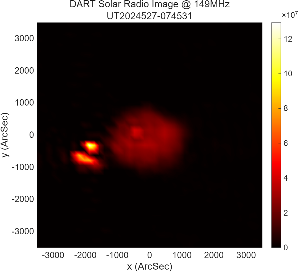 圆环阵太阳射电成像望远镜观测所得的太阳事件射电图像[供图:天气室DART研究团队]