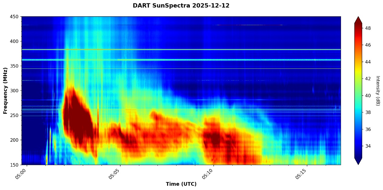 圆环阵太阳射电成像望远镜观测所得的太阳射电暴事件频谱图[供图:天气室DART研究团队]